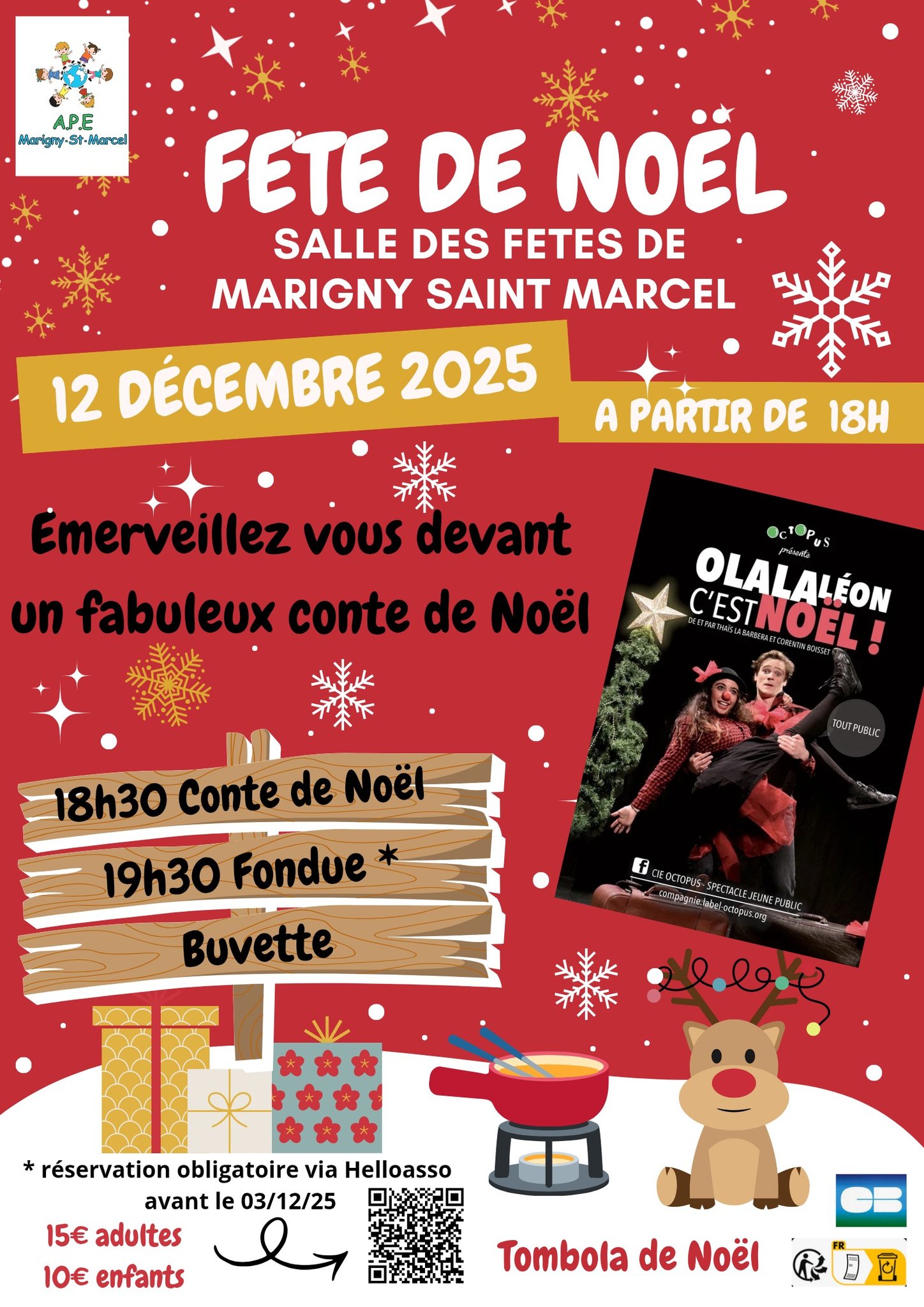 19h30 : fondue (réservation avant le 03/12 via Hello asso : https://www.helloasso.com/.../ape.../evenements/fete-de-noel )