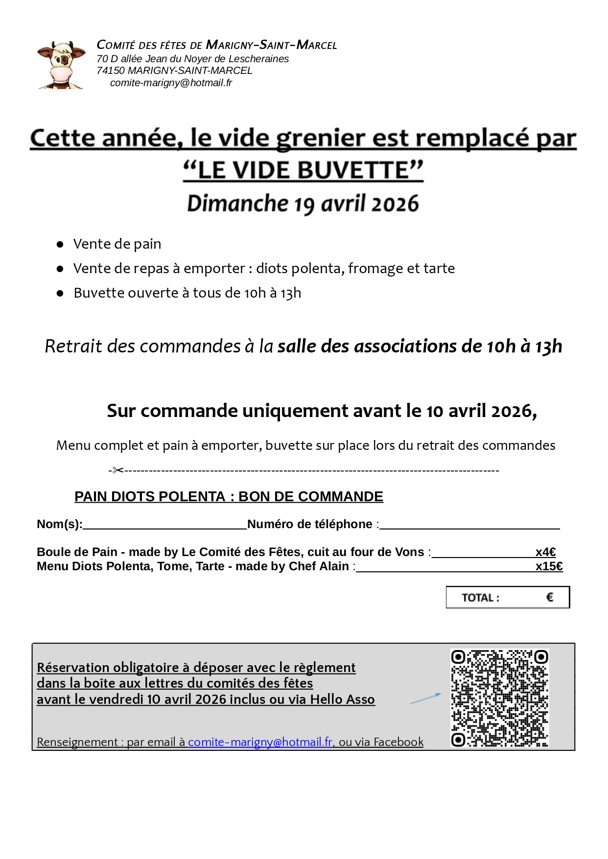 🔔 MAIS, on garde quelques ingrédients qui font la réussite du week-end en temps normal : le pain fabriqué avec soin et cuit au four, le repas diots-polente confectionné par notre cuisto en chef, et la buvette incontournable avec la joie et la bonne humeur qui la caractérisent.